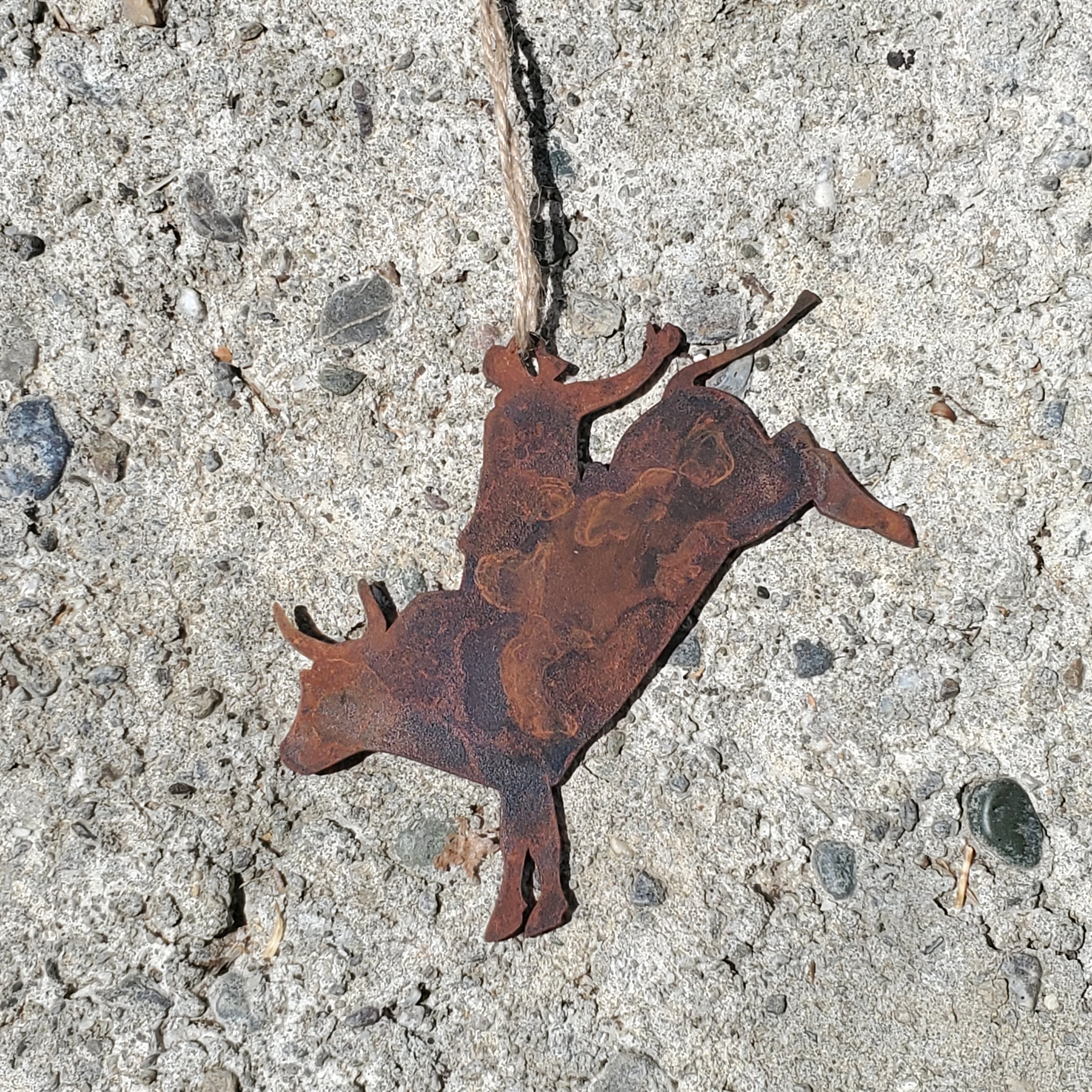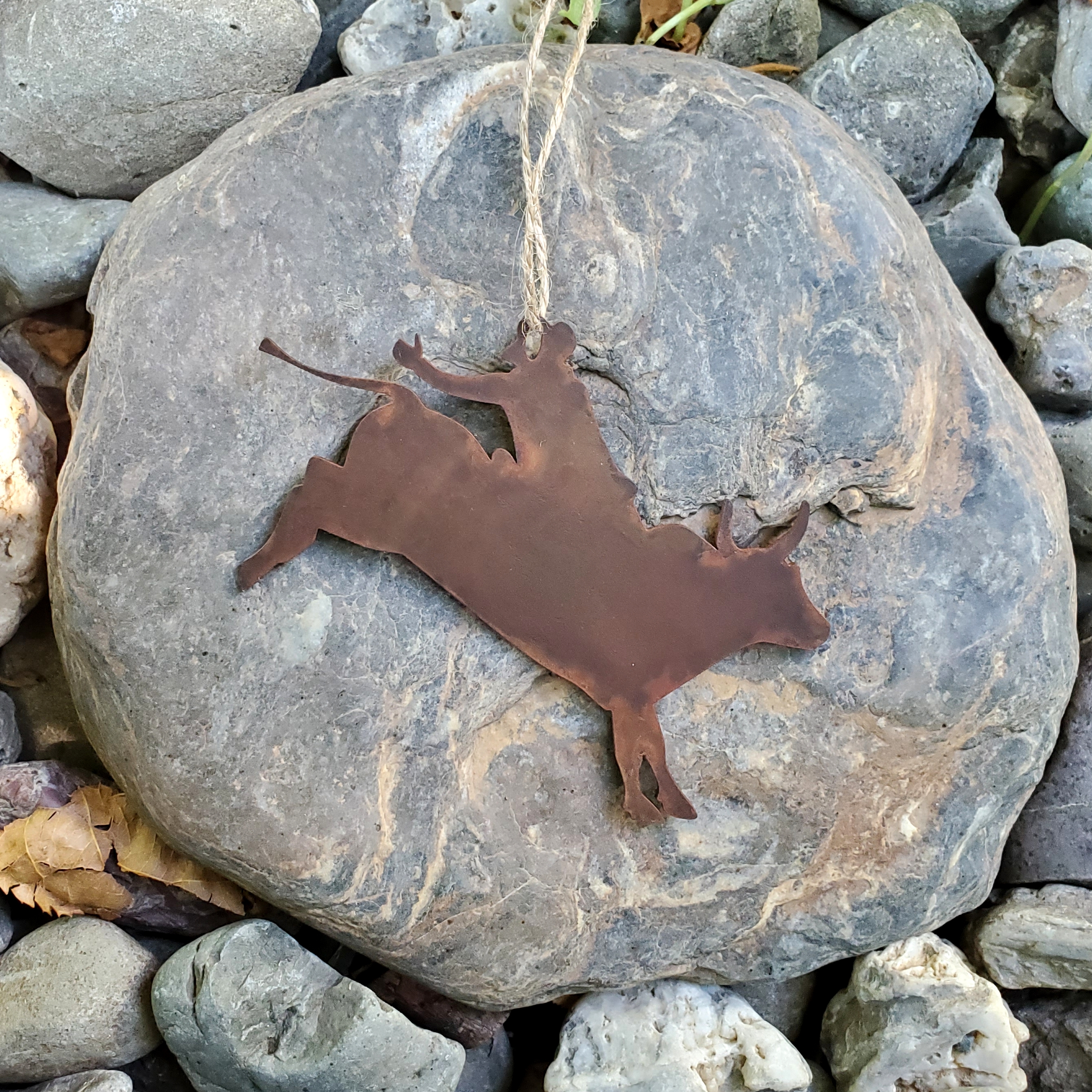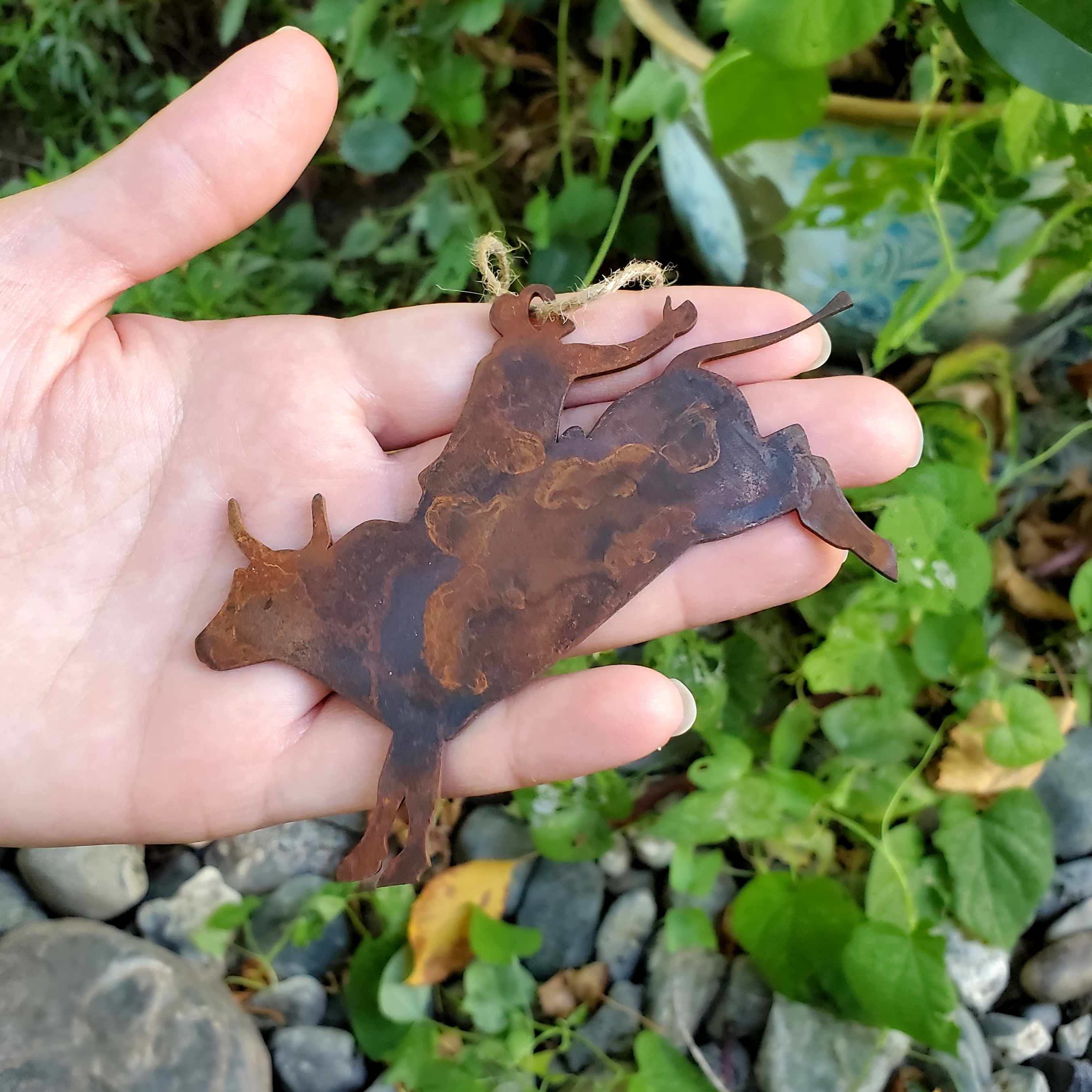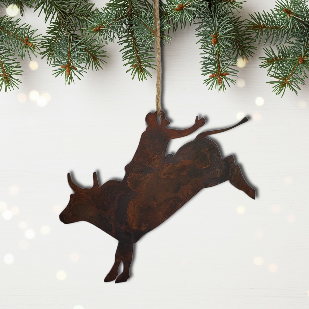 Capture the spirit of the rodeo with this rustic Bull Rider Christmas ornament. Crafted from durable 14-gauge steel and finished with Ironstone Steel’s signature rusted patina, this ornament features rich, earthy tones and a timeless, weathered appearance that will add a bold, Western flair to your holiday decor.