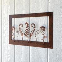 Each metal piece is cut from American Steel in our shop and hand finished with a unique rust and clear coat. Due to the hand coloring process, each piece is one-of-a-kind.